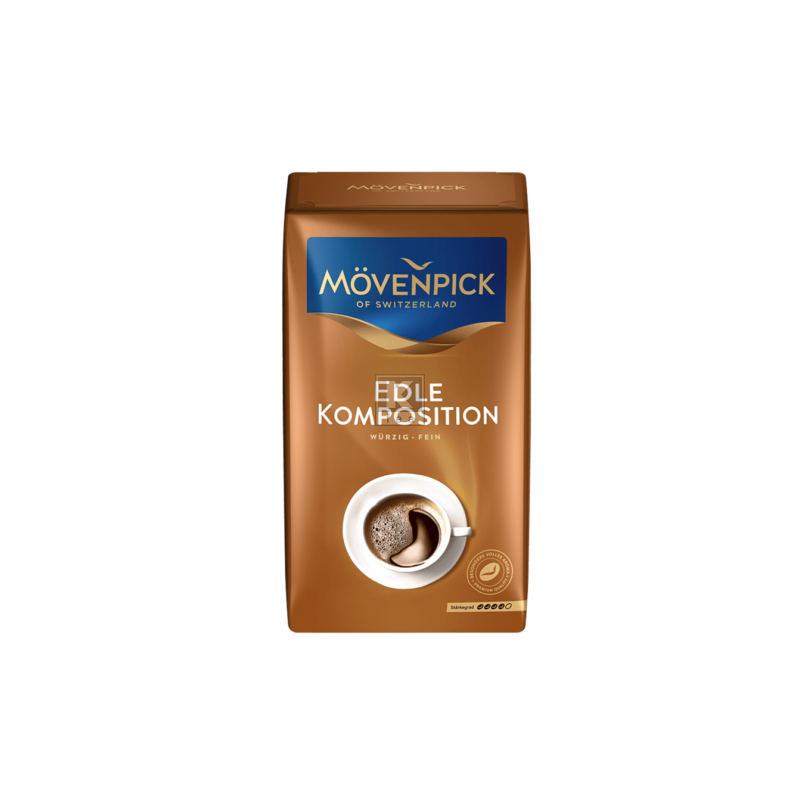 Movenpick Edle Komposition (Fine Balance) este o cafea macinata cu o aroma bogata si echilibrata. Cafeaua este obtinuta dintr-un amestec de boabe de cafea Arabica si Robusta selectate de pe cele mai bune plantatii din intreaga lume.