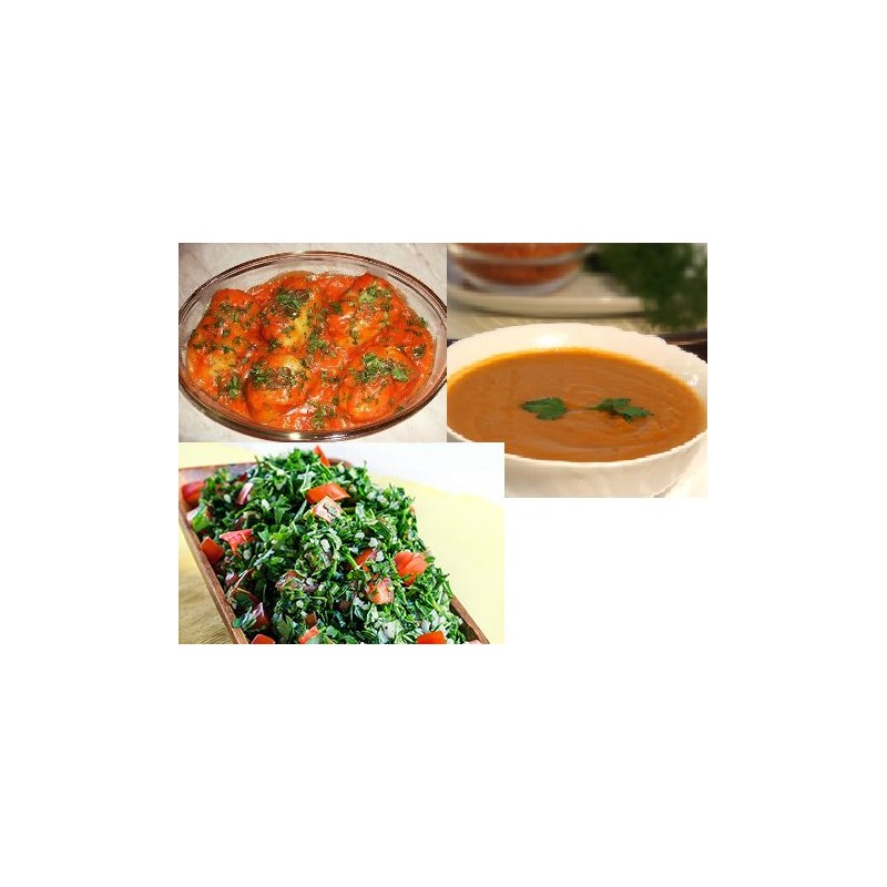 Contine: Supa de Linte (2.4 l), Ardei Umpluti cu Pui (2.0 kg), Salata Tabbouleh (400 grame)