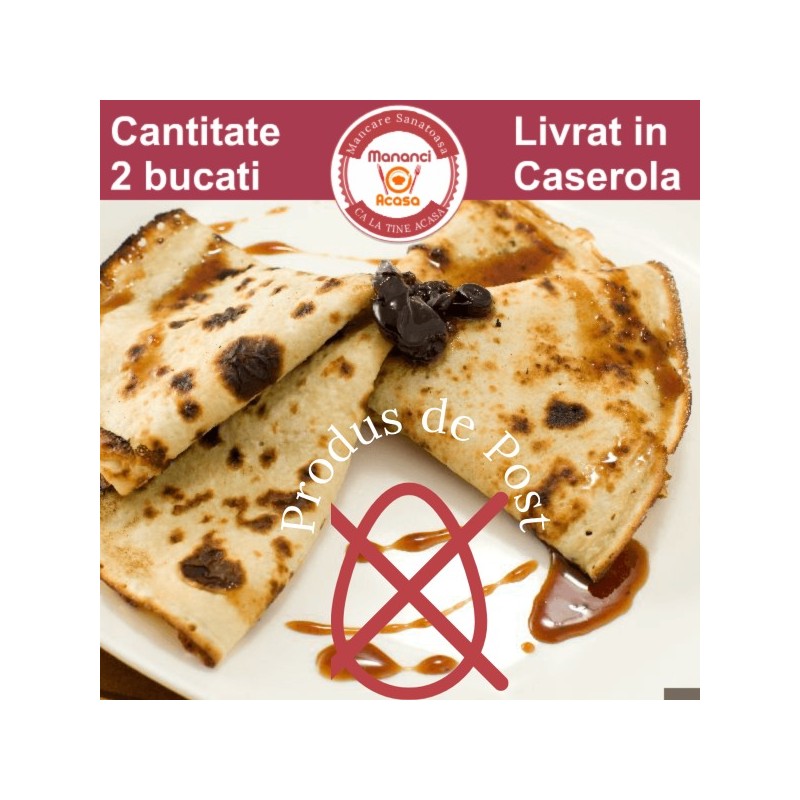 Contine: o portie de clatite cu dulceata - preparate de post.